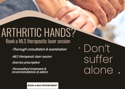 At Podology we have had great success with the treatment of arthritic hands. The MLS® laser should be considered for the relief of arthritic pain and stiffness, particularly since it has no known side effects and is non-invasive.