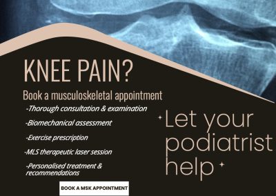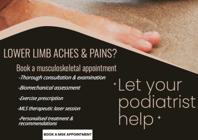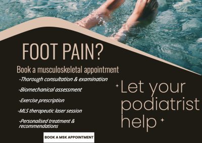 Your podiatrist will conduct a course of MLS laser -usually 6 sessions over a 3 week period. You will be given an exercise regime to conduct at home and you may be prescribed orthotics to wear in your shoes to improve your foot function and provide support.